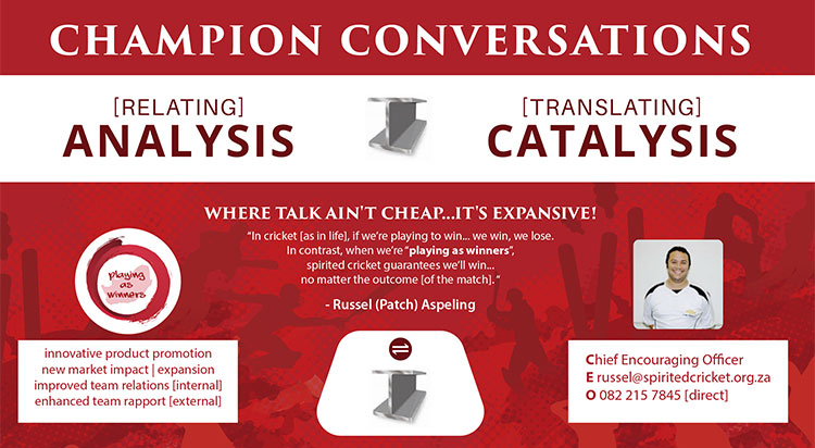 "There’s certainly a significant difference in ‘playing to win’ versus playing as winners. We are all born with a champion mentality inside us, spirited cricket reminds us of the empowering truth of playing as winners, lest we lose perspective of who we are and why we play."